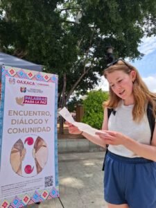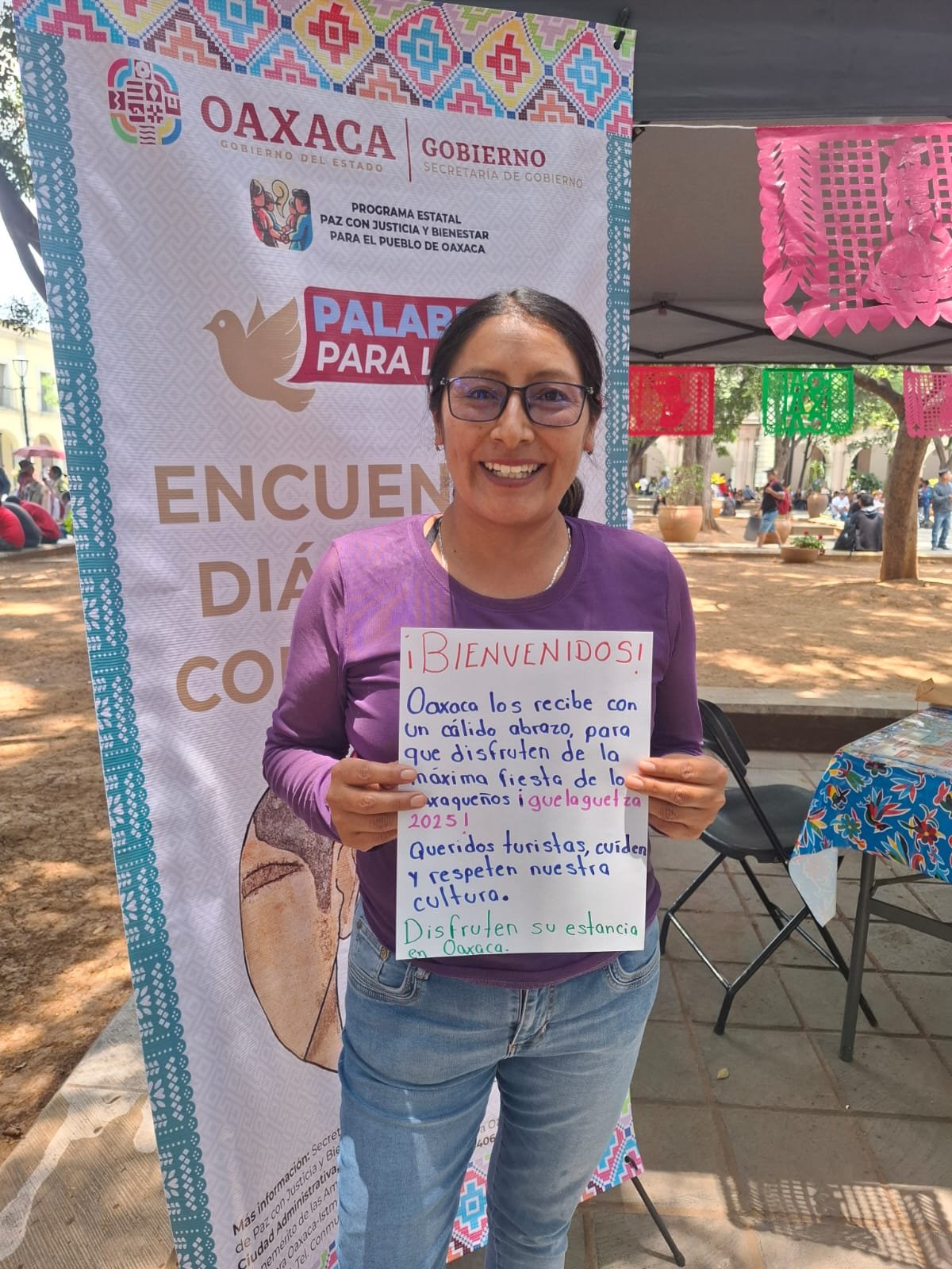 Consistió en invitar a las y los habitantes durante las fiestas de la Guelaguetza 2025, a escribir desde el corazón, generado un espacio de encuentro humano entre locales y extranjeros, contribuyendo a reconstruir el vínculo social, revitalizando el sentido de comunidad, activa la agencia ciudadana, ya que transforma a los oaxaqueños en anfitriones conscientes del valor de Guelaguetza, con valores de diálogo, respeto y empatía.